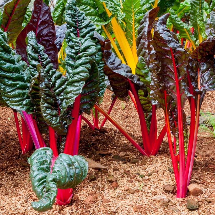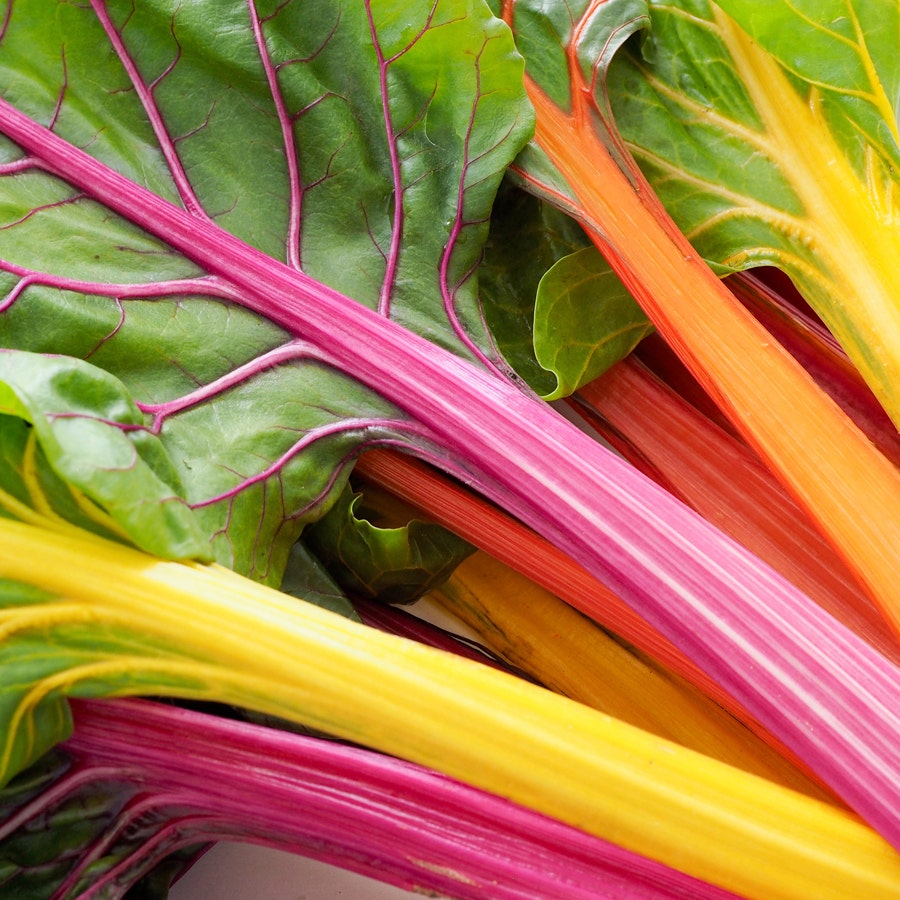 These brilliantly-colored stems are so beautiful that you may forget to harvest the succulent, sweet leaves. Electric yellows, pinks, crimsons, oranges, purples, whites, and greenssome even stripedfestoon the 20-inch stems. Many keep their color even after cooking, and all are delightfully festive.