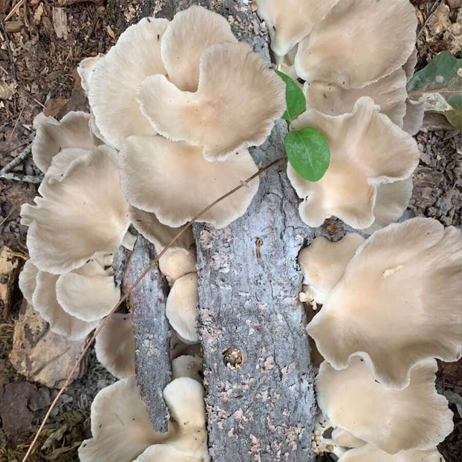 7. In 8 months to one year, you will have beautiful fresh, delicious brown oyster mushrooms. After that, they will produce new crops intermittently year-round. All they need is consistent moisture and, after you harvest a mushroom, a good deep soaking at the plug site.
