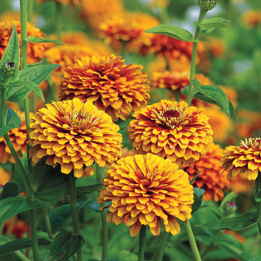 This beautiful zinnia has been awarded a 2015 Fleuroselect Novelty Award, Europe's highest honor for flowers from seed. The judges felt that its earlier bloom time, versatile landscape/cutting habit, and big lovely double blooms were absolutely unsurpassed, and we have to agree. For a big show, rely on Crouching Tiger Zinnia, with or without its Hidden Dragon.