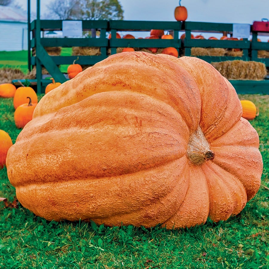 It's easy to grow 400- to 500-pound golden-orange fruits with this amazing variety. Rough-skinned and beautifully ribbed, the pumpkins just keep going and going at an astonishing rate. You've got to try it for yourself.
