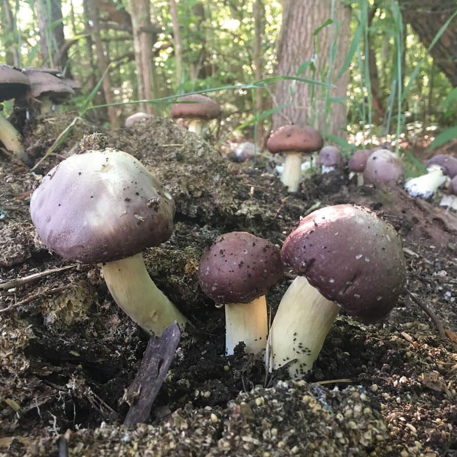 A landscape beneficial mushroom, it not only produces water, increasing water in the soil, but also releases a compound called octanol which attracts earthworms that aerate and fertilize the soil. Predatory on coliform bacteria, it mulches the floors of livestock pens and chicken runs. It's the perfect mushroom for gardening and permaculture projects but also grows well indoors on pasteurized straw encased with soil.