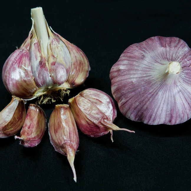 This late-season garlic is especially good for baking, due to its creamy texture. The bulbs are white on the outside with 8 to 10 brilliant red cloves inside. Garlic Chesnok Red is also an excellent choice for storing, as it lasts 4 to 6 months.