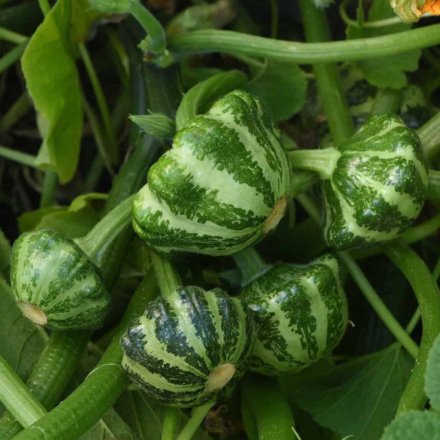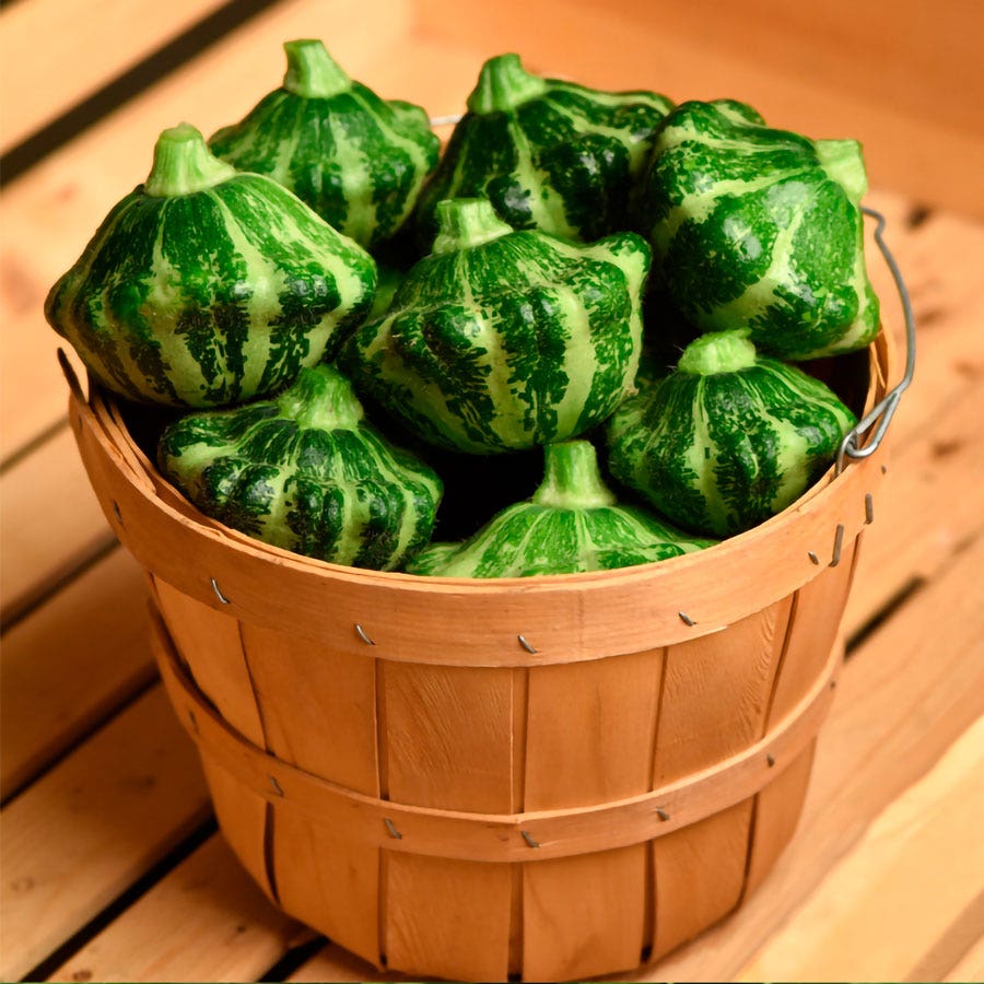 Ready to harvest in a flash, Green Lightning delivers a quick and easy crop of summer squash that's packed with delicious flavor, which is mild and sweet but robust enough to stand up to seasoning. Early ripening, it is one of the first of the season to be harvested and offers a substantial yield. The fruits are not only flavorful but also cute as a button and highly ornamental. Each 2½- to 5-inch fruit weighs about 1 to 2 pounds and displays unique medium- and light-green striping on its glossy rind. But don't let their small size fool you: the seed cavity is small, so there's plenty of edible flesh for roasting, grilling, or eating raw. And their pretty scallop shape adds plenty of plate appeal.