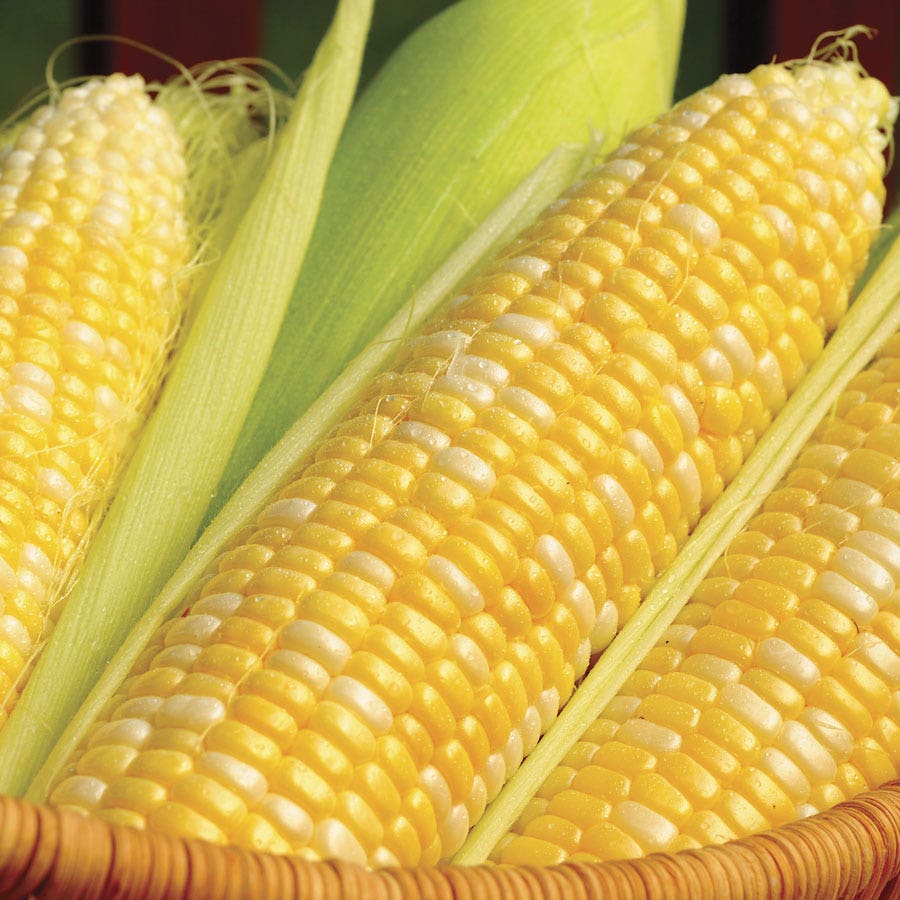 Super sweet corn is specially bred to contain twice the sugar of regular sweet corn, and these hybrids retain their flavor and tenderness up to 2 weeks longer than regular sweets. They require warm soil for good germination, and must be isolated from other types of corn (non super sweet varieties) by 200 feet or at least 2 weeks' planting time.