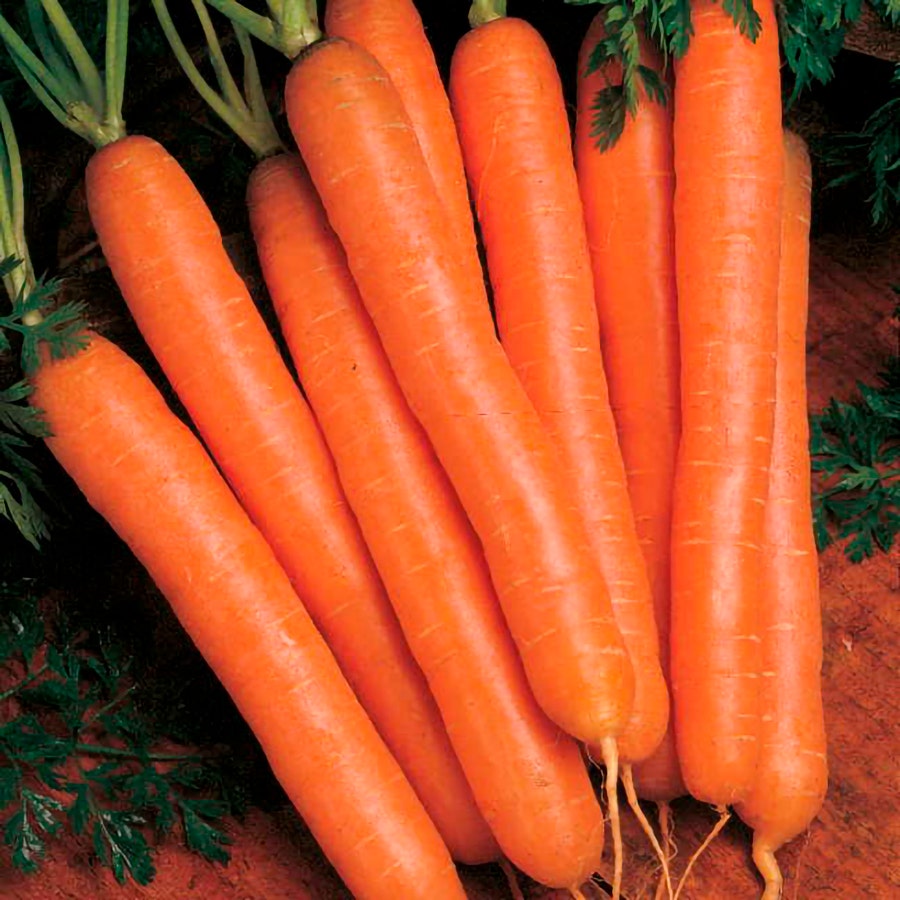 Pushing its deep orange-red shoulders up to the surface days and even weeks sooner than most others, Scarlet Nantes is an exceptionally sweet variety just made for slicing. The 6- to 7-inch roots are firm, straight, and not tapered, with inconspicuous cores and plenty of tender, crisp, and ultra-sweet flavor in every bite.