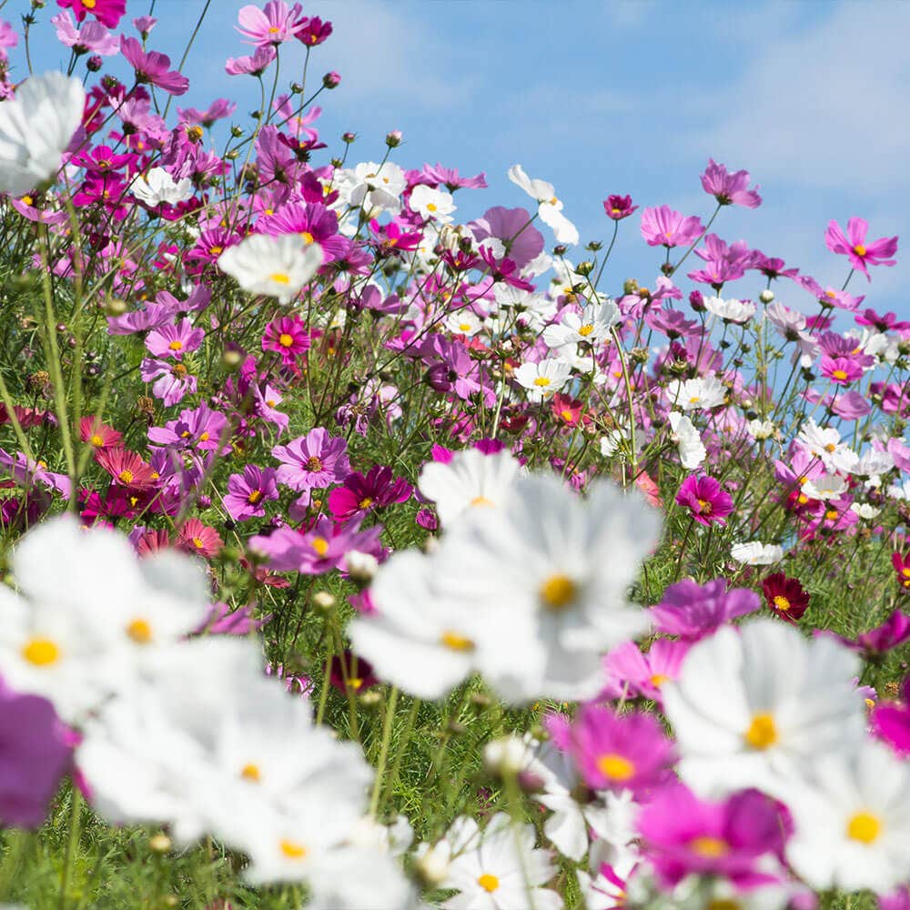 Sea Shells Mix Organic Cosmos Seeds offer shell-shaped, tubular, and fluted petals in blossoms of white, pink, and deep rose. The colorful blooms are simply irresistible to butterflies and attract them, along with bees, birds, and other beneficial insects, all season long. The delicate blooms make gorgeous cut flowers. And the more you cut, the more blooms the Sea Shells Mix Organic Cosmos produces.