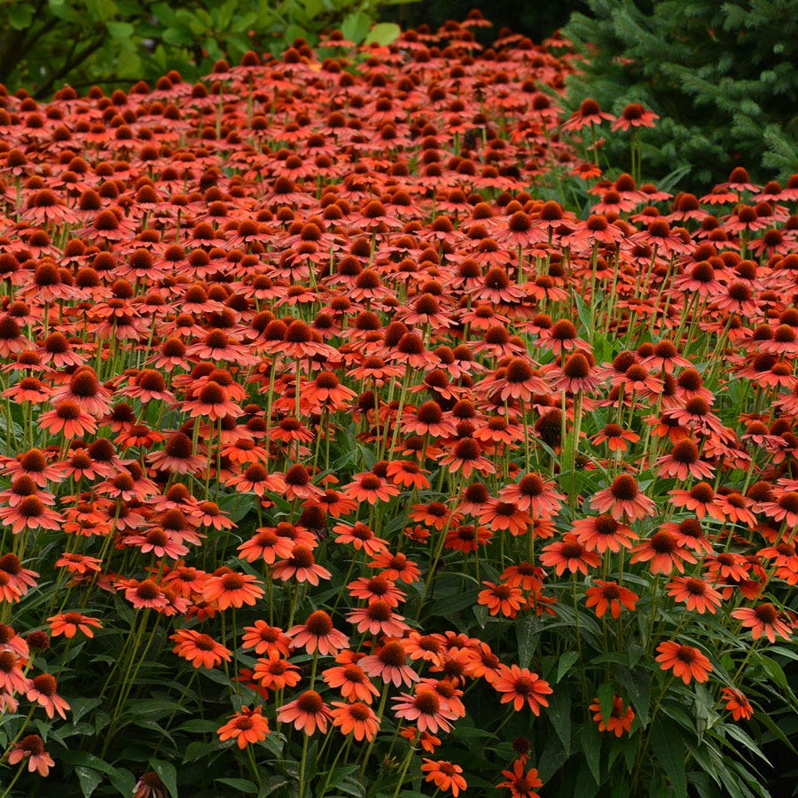 No more than 2 feet high and wide, this selection brings Echinacea into the realm of patio containers and smaller garden spaces without sacrificing flower power. The blooms are not only abundant, they are lightly fragrant, and pollinators adore them. Like all Coneflowers, Flamenco Orange attracts beneficial insects and deters pests, so you can even add it to the herb or vegetable garden as a guard plant. What a lovely addition to a food crop and so useful.