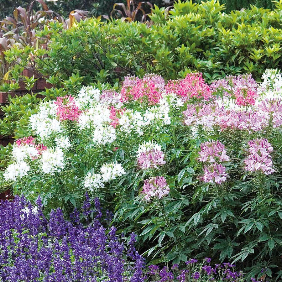 Now you can enjoy the airy blooms and bushy habit of Cleome like you've always wantedup close, instead of shoved in the back of the border. This dwarf hybrid Spider Flower mix gives you armloads of blooms over a very long season on plants that don't exceed 4 feet tall. The butterflies and hummingbirds will be delighted, and so will you.
