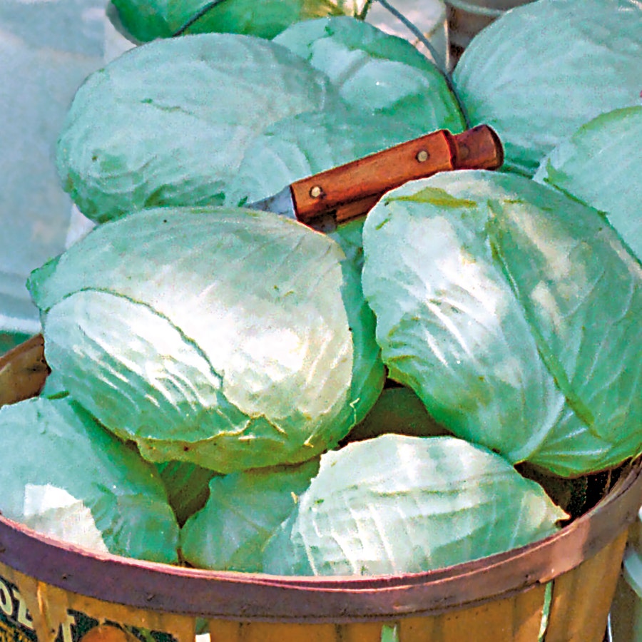 Cabbage is a cool-season crop, sown in early spring for early-summer harvest or in mid- to late summer for fall harvest. Where winters are mild, it can be sown nearly year-round, except during the hot summer months. Start indoors or direct sow, spacing plants 2 to 2 1/2 feet apart. Before planting, prepare the soil well with fertilizer, and add a dose of ammonium nitrate about a month into the growth season. Harvest the heads when they are firm and brightly colored. Plants may form smaller side-heads after the main head is harvested.